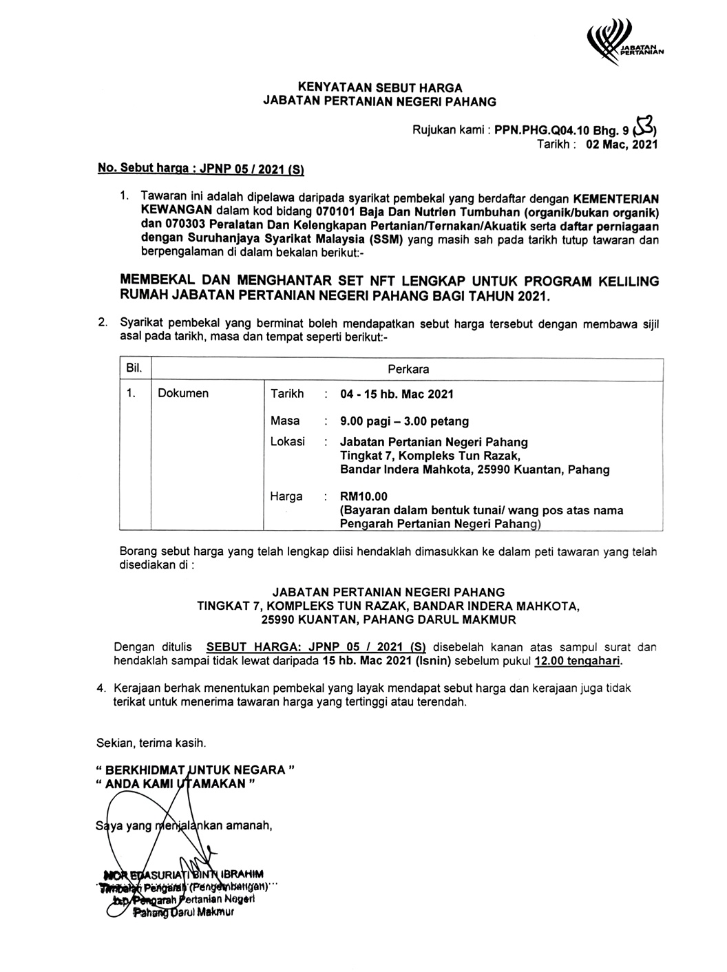 Tawaran Sebutharga Jabatan Pertanian Negeri Pahang Facebook from lookaside.fbsbx.com Senarai usahawan tanam kekal pengeluaran makanan tkpm projek jabatan pertanian negeri pahang ta. دار المعمور, the abode of tranquility) is a sultanate and a federal state of malaysia. Jkn pahang ditubuhkan bagi pengurusan program kesihatan melalui perancangan yang strategik, pengurusan dan pengagihan sumber yang munasabah, perlaksanaan, pemantauan dan penilaian aktivitinya untuk memastikan perkhidmatan kesihatan dapat diberikan kepada masyarakat agar. Kenyataan sebutharga jabatan pertanian negeri pahang perkara: Jabatan pendidikan (pelajaran) negeri pahang (jpnp) adalah jabatan yang menguruskan perkara yang berkaitan pendidikan di seluruh negeri pahang. Also known as the pahang agriculture department in english. Bilangan kakitangan di jabatan kini melebihi 300 orang yang terdiri dari guru dan bukan guru. Specialize in subsidi kerajaan, agriculture and subsidy.